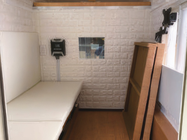 キャンピング仕様に、キッチンカ―同様の大型跳ね上げ式扉を採用!